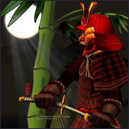 A scene right out of Japan’s ancient feudal period; a samurai stealthily walking through a moonlit bamboo grove.