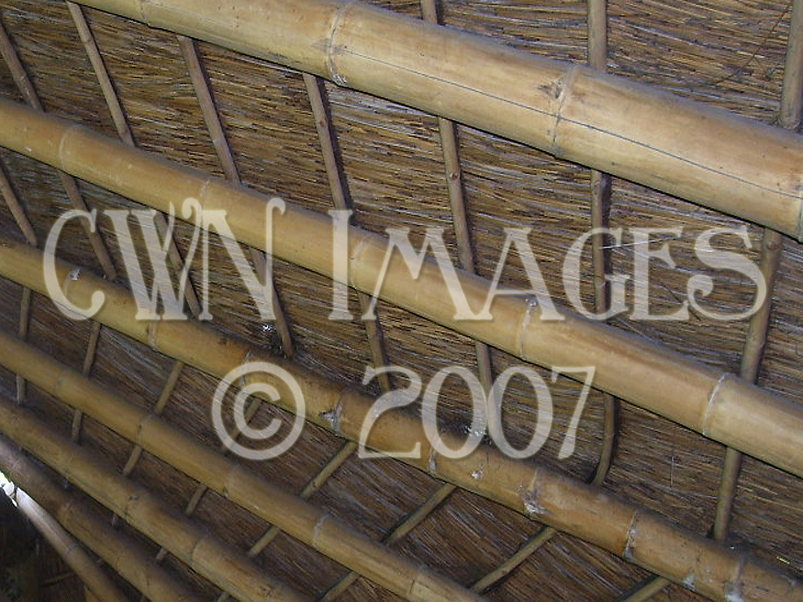 ![]() Bamboo used to frame and thatch the roof of a gazebo; underside pictured |